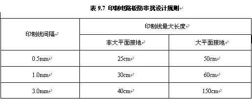 爲了印制印(yin)制導線之間的串(chuàn)擾,在設計布線時(shí)應盡量避免長距(ju)離的平行走線,盡(jìn)可能拉開線與線(xian)之間的距離,信号(hào)線❓與地線及電源(yuan)線盡可能不交㊙️叉(cha)。在使用一般電路(lu)時,印制導線間隔(gé)和長度設計可以(yǐ)參考表9.7所列規則(ze)。在一些對幹擾十(shi)分敏感的信号線(xian)之間可以設置一(yi)根接地的印制線(xiàn),也可有效地抑制(zhi)串擾。