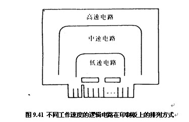 (5)在印(yin)制闆布置高速、中(zhong)速和低速邏輯電(dian)路時,應按照圖9.41的(de)方式排列器件。
