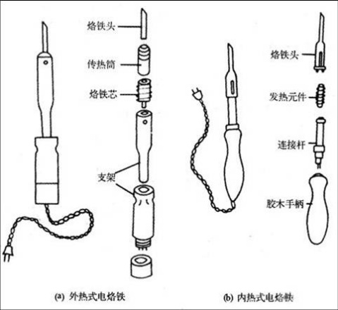 内熱式電烙(lào)鐵和外熱式(shi)電烙鐵的不(bu)同他們的結(jie)構也有區别(bié):