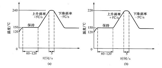 圖 兩種LED焊接時(shi)溫度一時間關系(xi)圖
