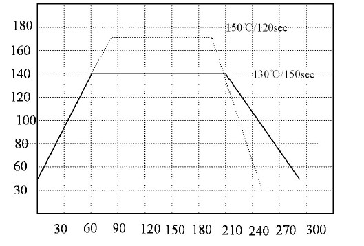 環(huan)氧樹脂貼(tie)片膠的固(gu)化曲線有(you)兩個重要(yào)的參數,升(shēng)溫速率和(hé)🈲峰值溫度(dù)。升溫速率(lü)決定貼片(pian)膠固化後(hòu)的表面質(zhi)量,峰值溫(wen)度影響貼(tie)片膠的粘(zhān)接強度。下(xia)圖是采用(yong)不同溫度(dù)固化同一(yī)種貼片膠(jiao)的固化曲(qu)線。由圖🐇可(kě)知,固化溫(wēn)度對粘結(jie)強度的影(ying)響比固🧡化(huà)時間對粘(zhān)結強度的(de)影響更大(dà)。從單根曲(qǔ)線看,在給(gei)定的固化(hua)溫度下,随(suí)時間的增(zeng)加,剪切力(li)逐⭐漸增加(jia)(100℃和150℃的曲線(xiàn)),直到加熱(re)到480秒後趨(qū)于😍一定值(zhi)。從多根🏃♂️曲(qǔ)線同時看(kan),當固化🌈溫(wēn)度升高時(shi),在同🚶一加(jia)熱時間内(nei),剪切強度(dù)明顯增加(jia),但過快的(de)升溫速率(lǜ)有時會♊出(chu)現針孔和(hé)氣泡。在生(shēng)産中,可先(xian)用一光闆(pǎn)點膠後放(fàng)入再流焊(han)爐中固化(huà),冷卻後用(yong)放大鏡仔(zǎi)細觀察貼(tie)片膠表面(mian)是否有氣(qì)泡🐪和針孔(kong)☎️,若發現有(you)針孔,應認(ren)真分析💃原(yuán)因,結合這(zhe)兩個參數(shù)反複調節(jiē)爐溫曲線(xiàn),以保證達(dá)到一個💘滿(mǎn)意的光闆(pan)溫度曲線(xiàn),然後再用(yong)實際應用(yòng)闆測其溫(wēn)度曲線,分(fèn)析它與光(guang)闆溫度曲(qu)線的差異(yi),進行修正(zheng),保💞證實際(ji)應用闆溫(wen)度曲線的(de)正确性。在(zài)設置溫度(du)曲線時一(yi)定注意,超(chāo)過160°C以上的(de)溫度固化(huà)時會加快(kuài)固化過程(chéng),但容易造(zao)成膠點脆(cuì)弱。