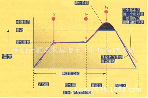 圖二、理論(lùn)上理想的回流(liú)曲線由四個區(qu)組成,前面三個(ge)🥰區加熱、最後一(yi)個區冷卻)